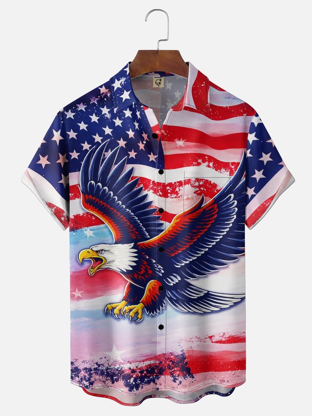 Moisture Wicking American Flag American Eagle 250th Anniversary Chest Pocket Holiday Shirt