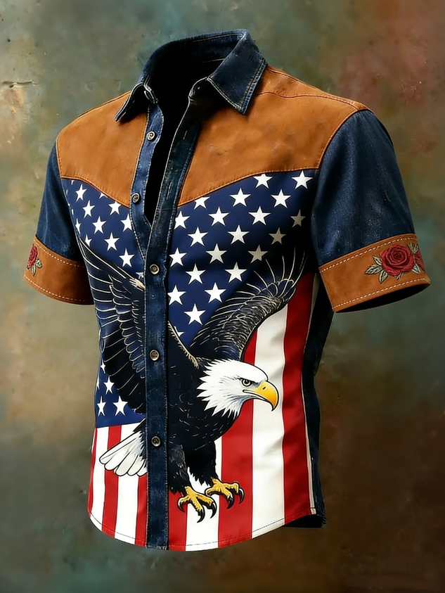 Moisture-wicking Independent Day American Flag Bald Eagle Freedom Chest Pocket Patriotic Shirt