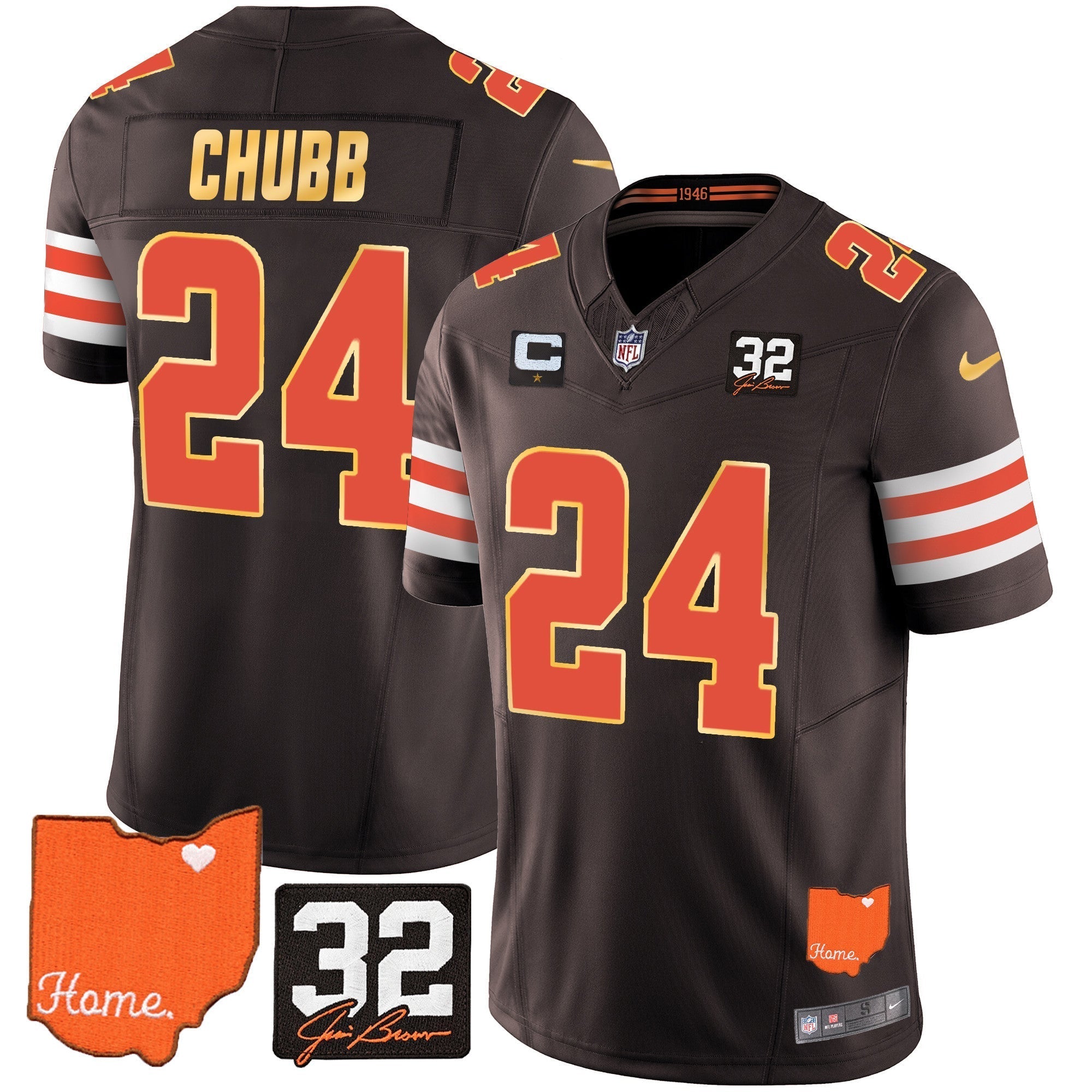 Browns #32 Jim Brown Memorial & Home Patch Gold Trim Jersey - All Stitched