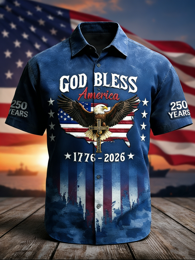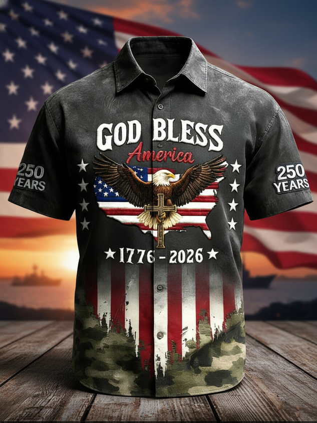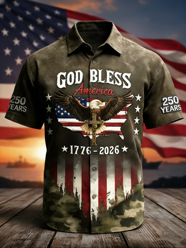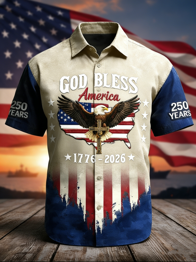 Moisture-wicking God Bless America 250 Years Independent Day American Flag Patriotic Shirt