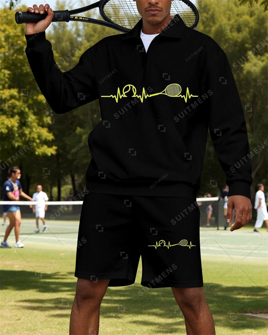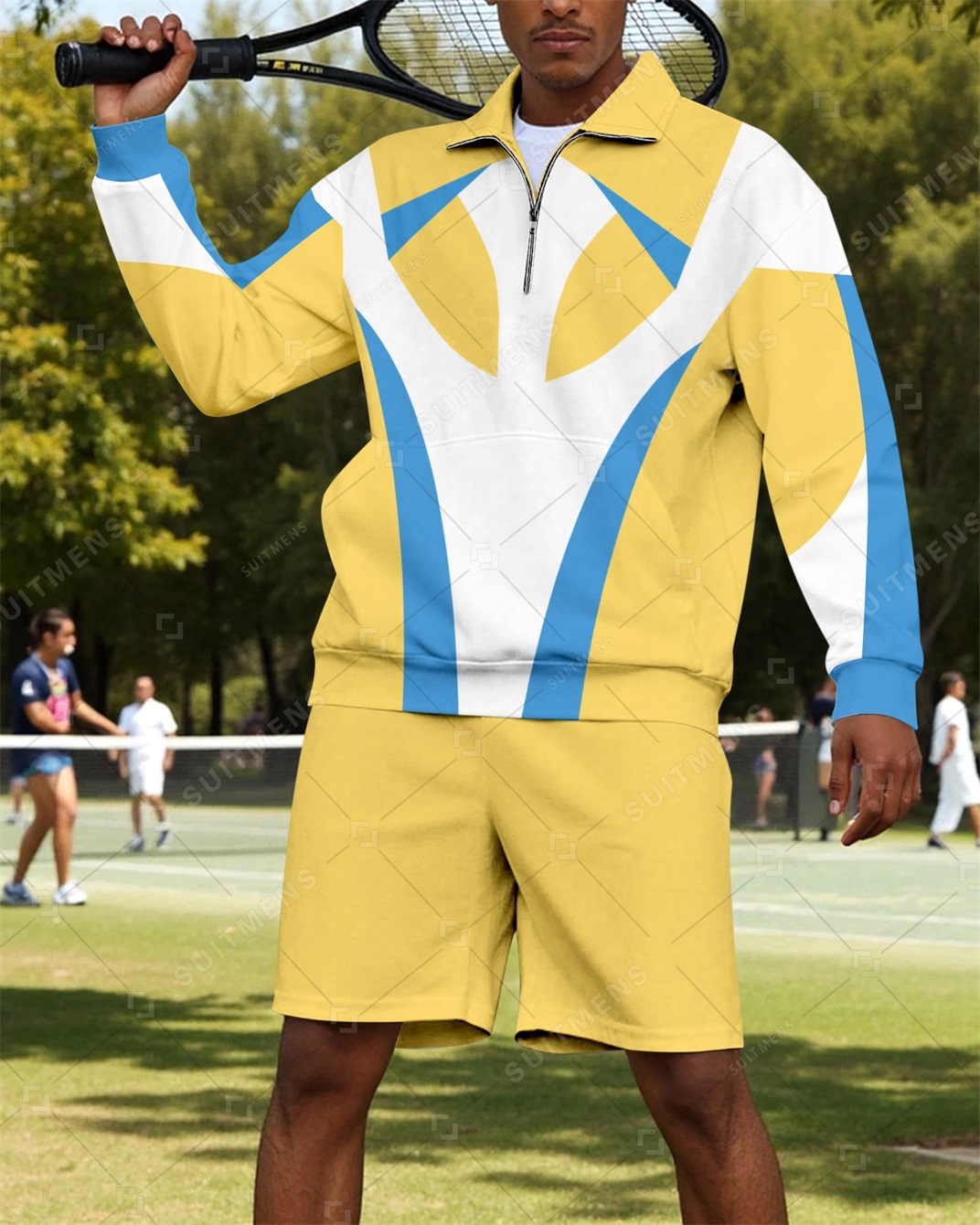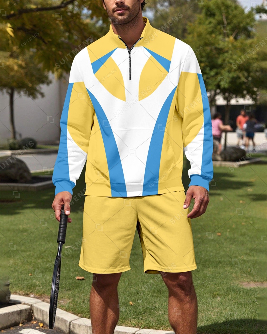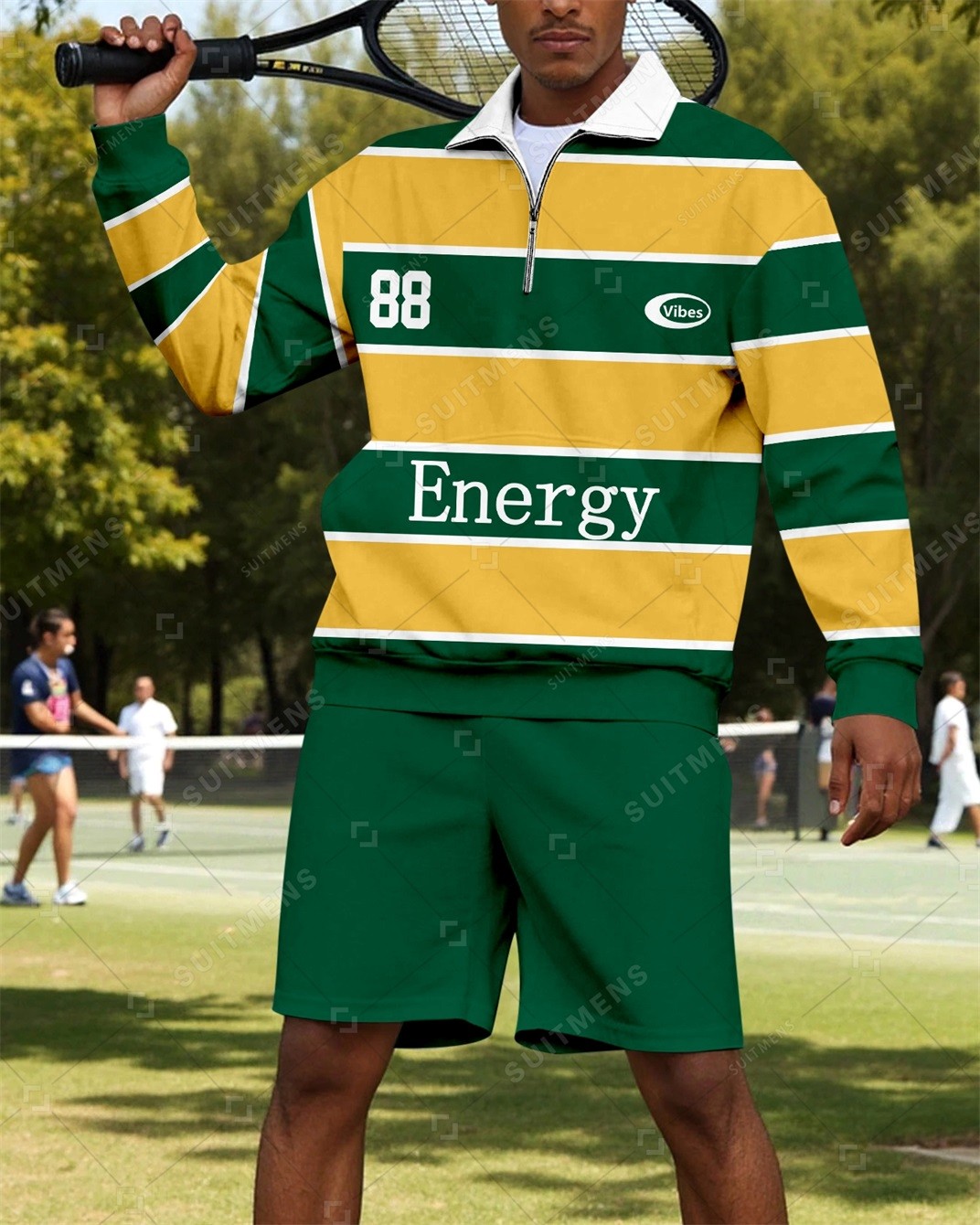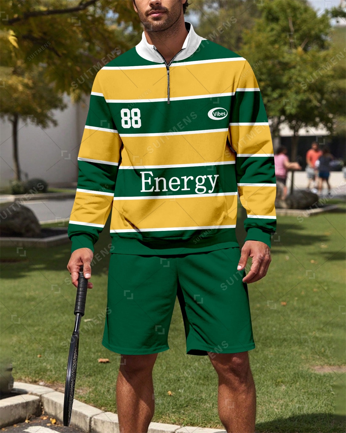 Men's Classic Print Baseball Autumn Jersey and Shorts Set 015