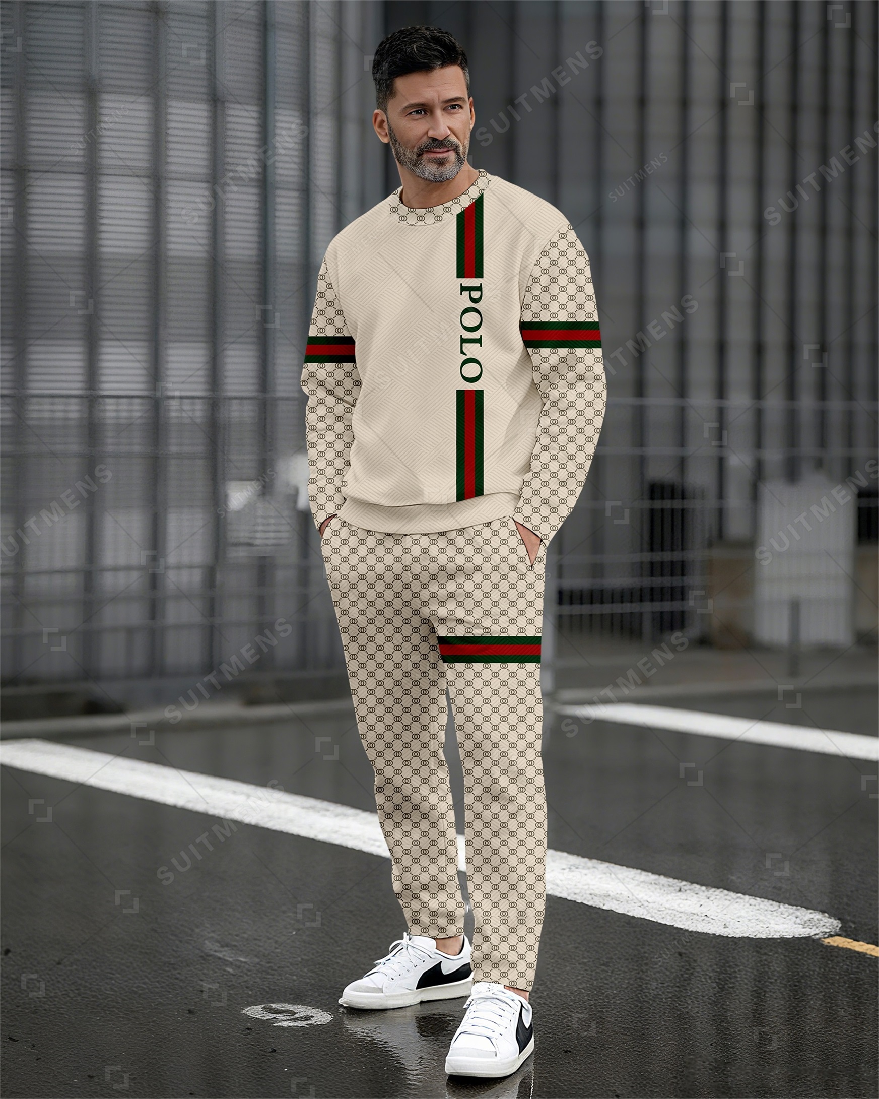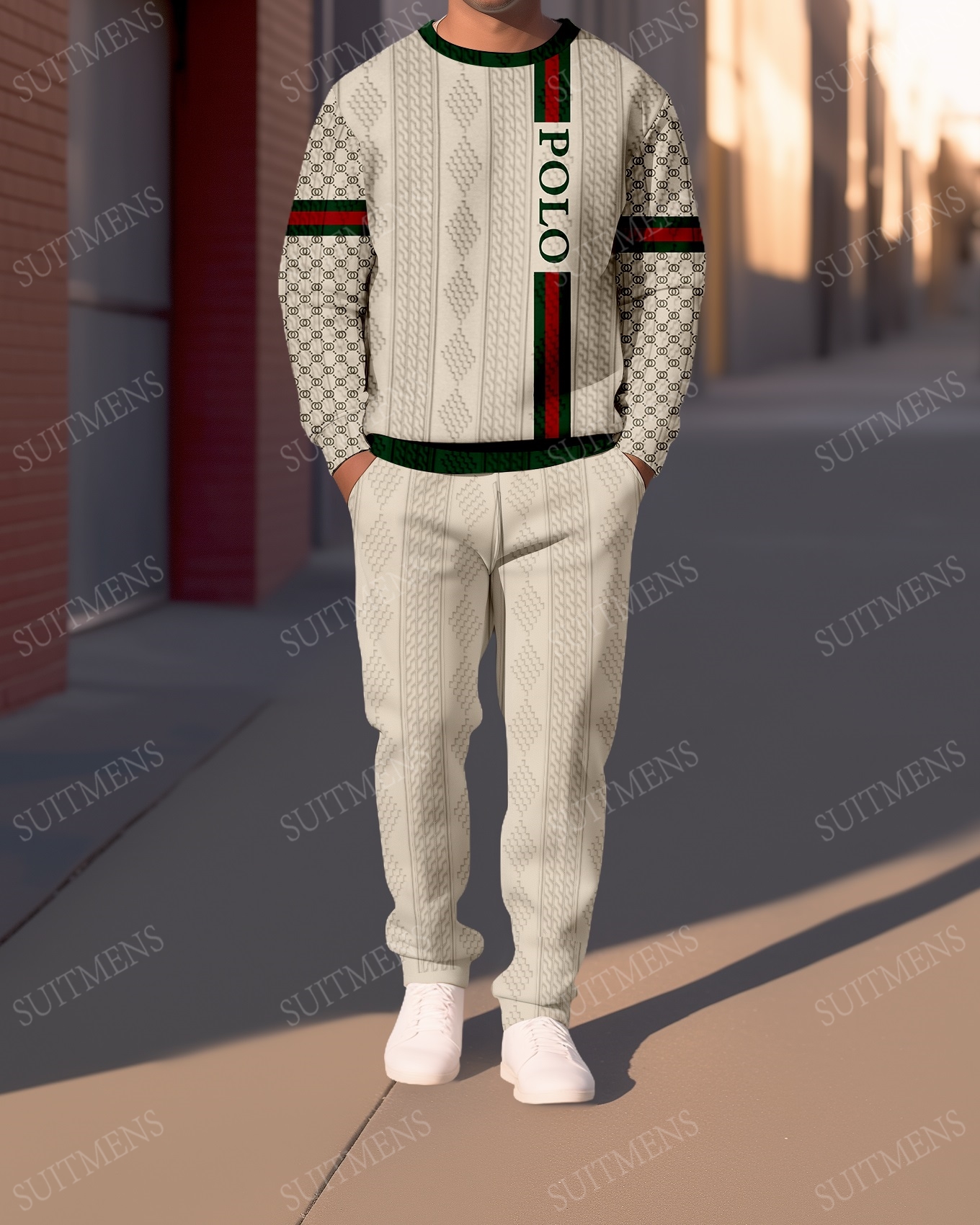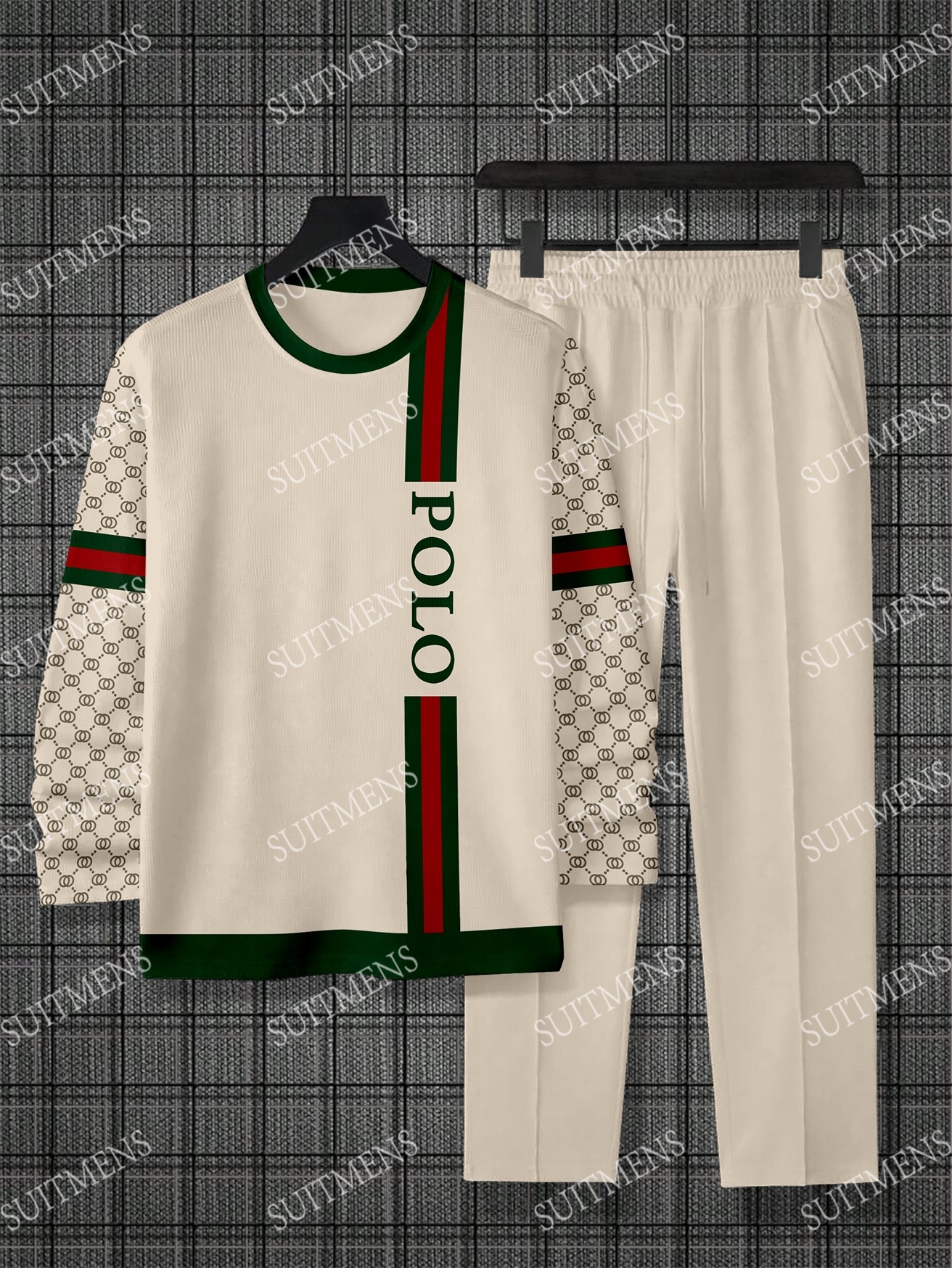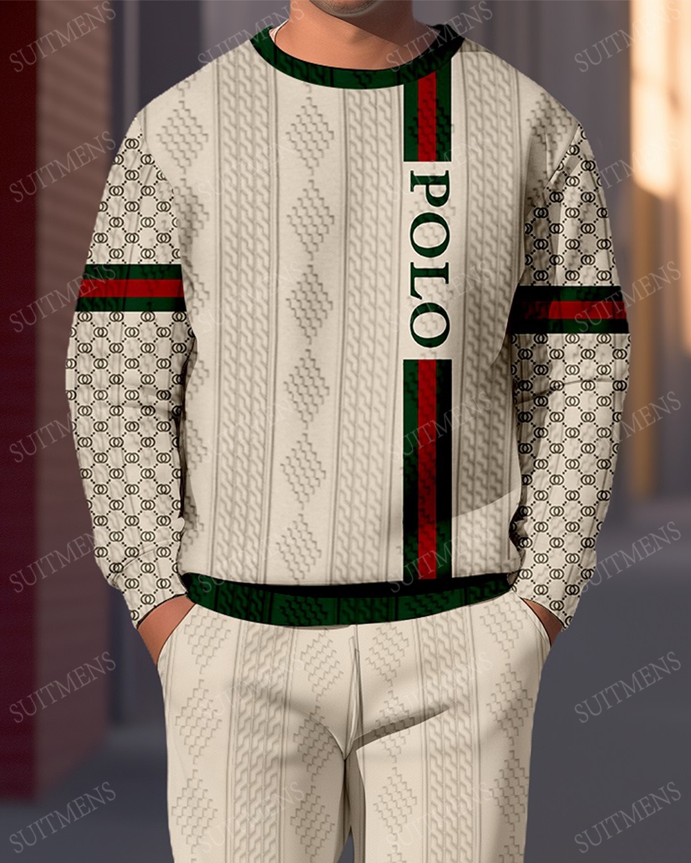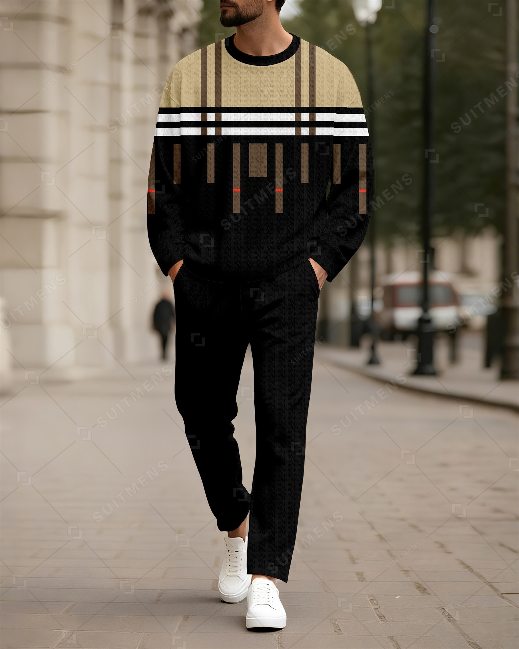 Men's Textured Jacquard Crew Neck Casual Sports Set 081