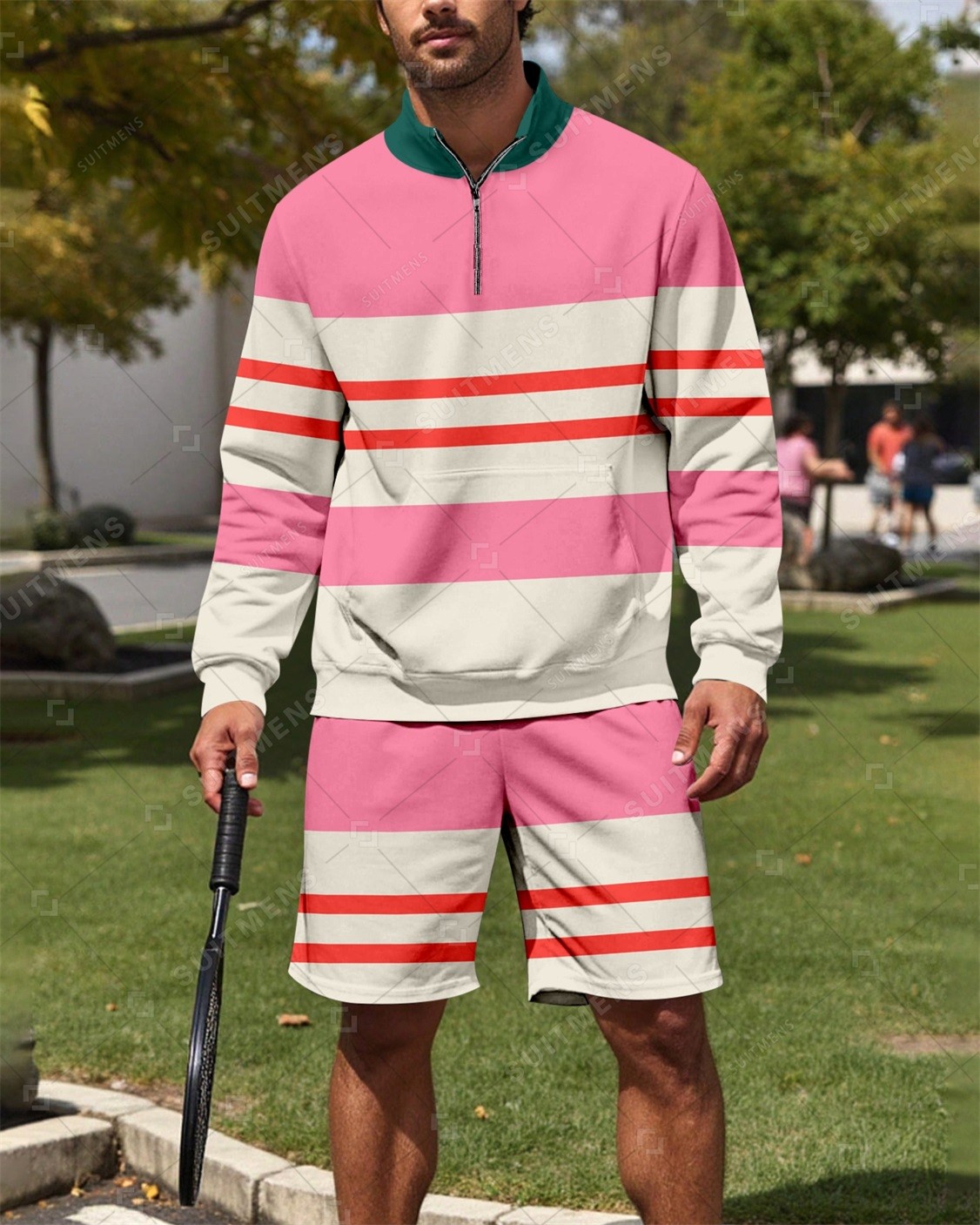 Men's Pink Striped Baseball Autumn Jersey and Shorts Set 010