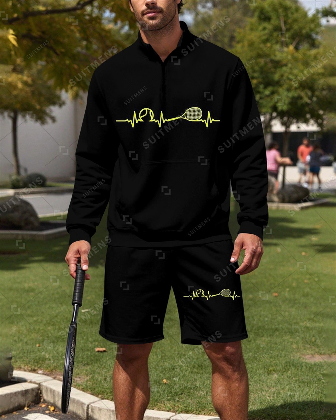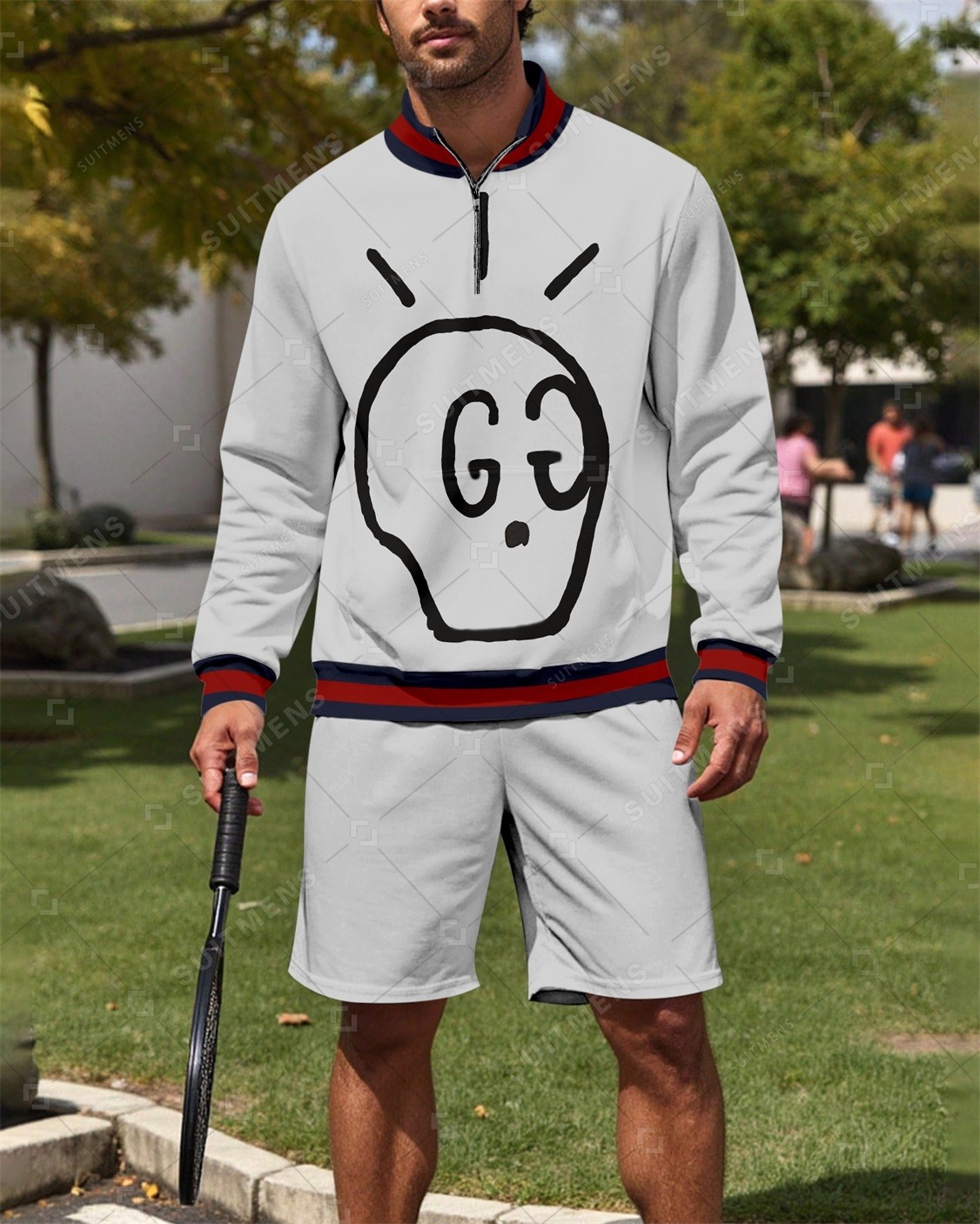 Men's Cartoon Print Autumn Sweatshirt and Shorts Set 002