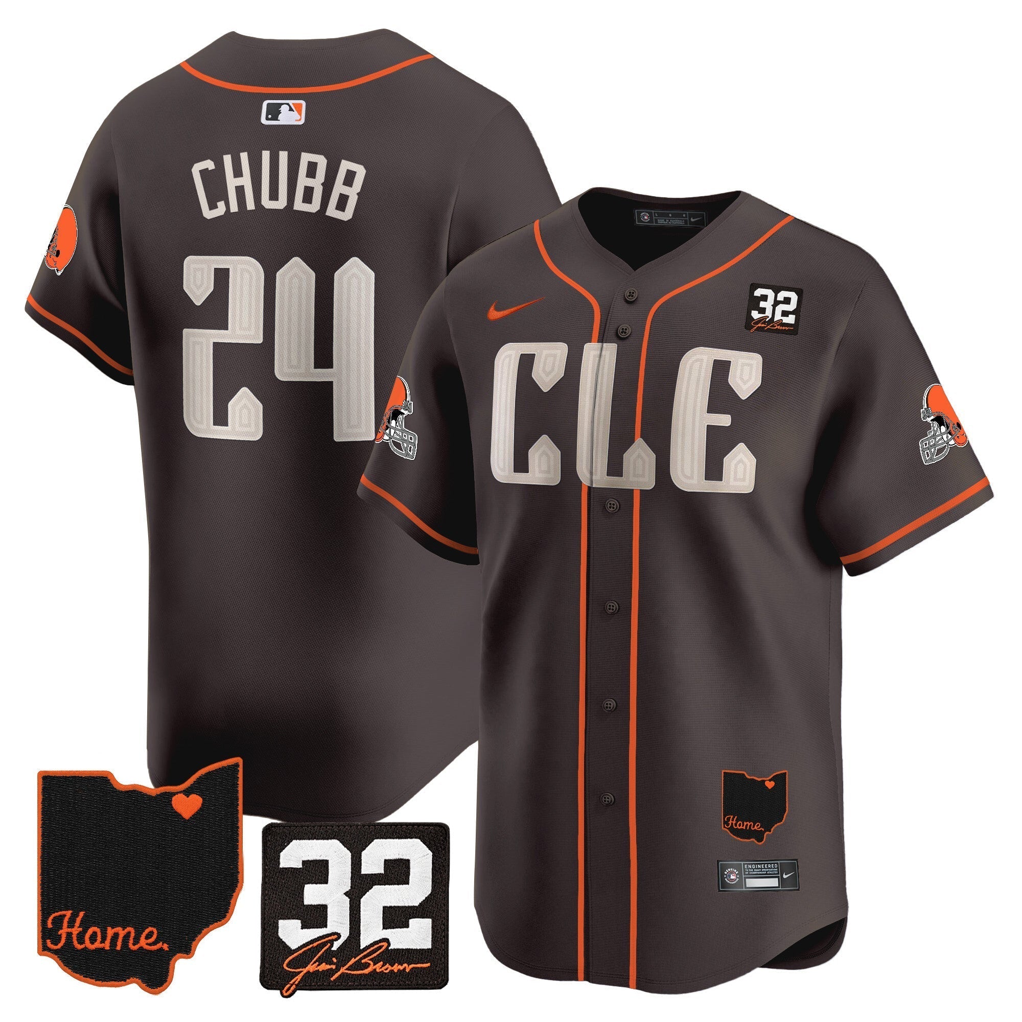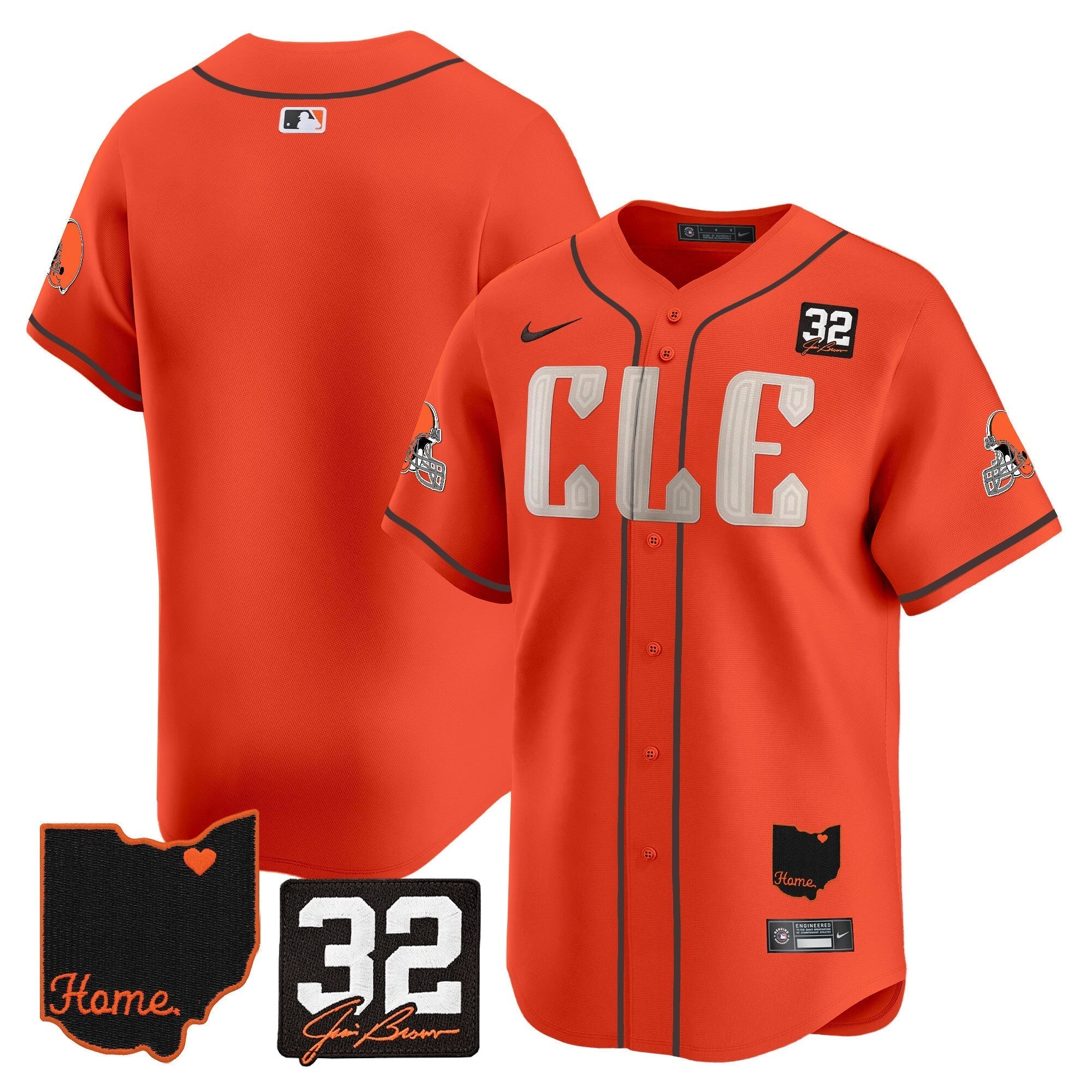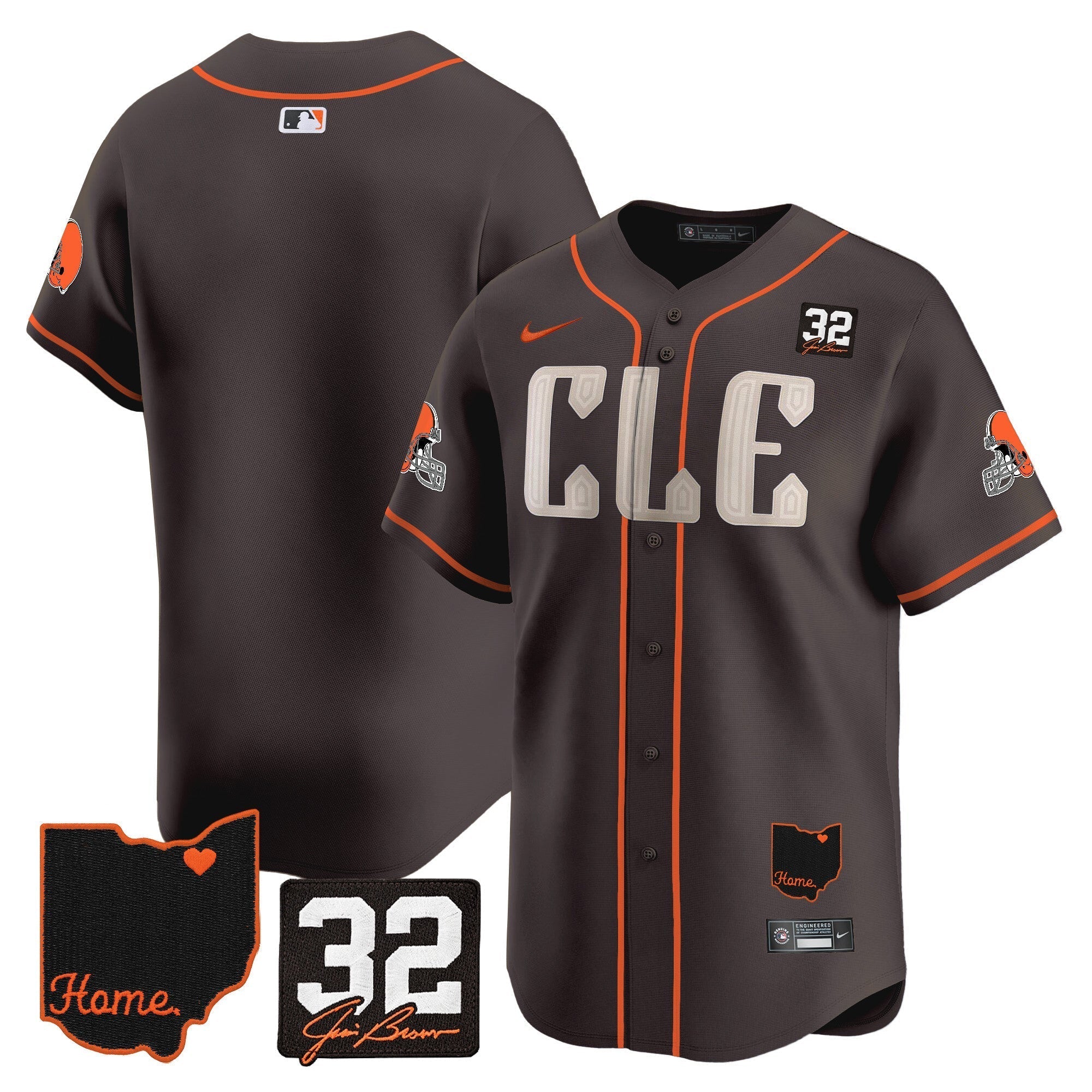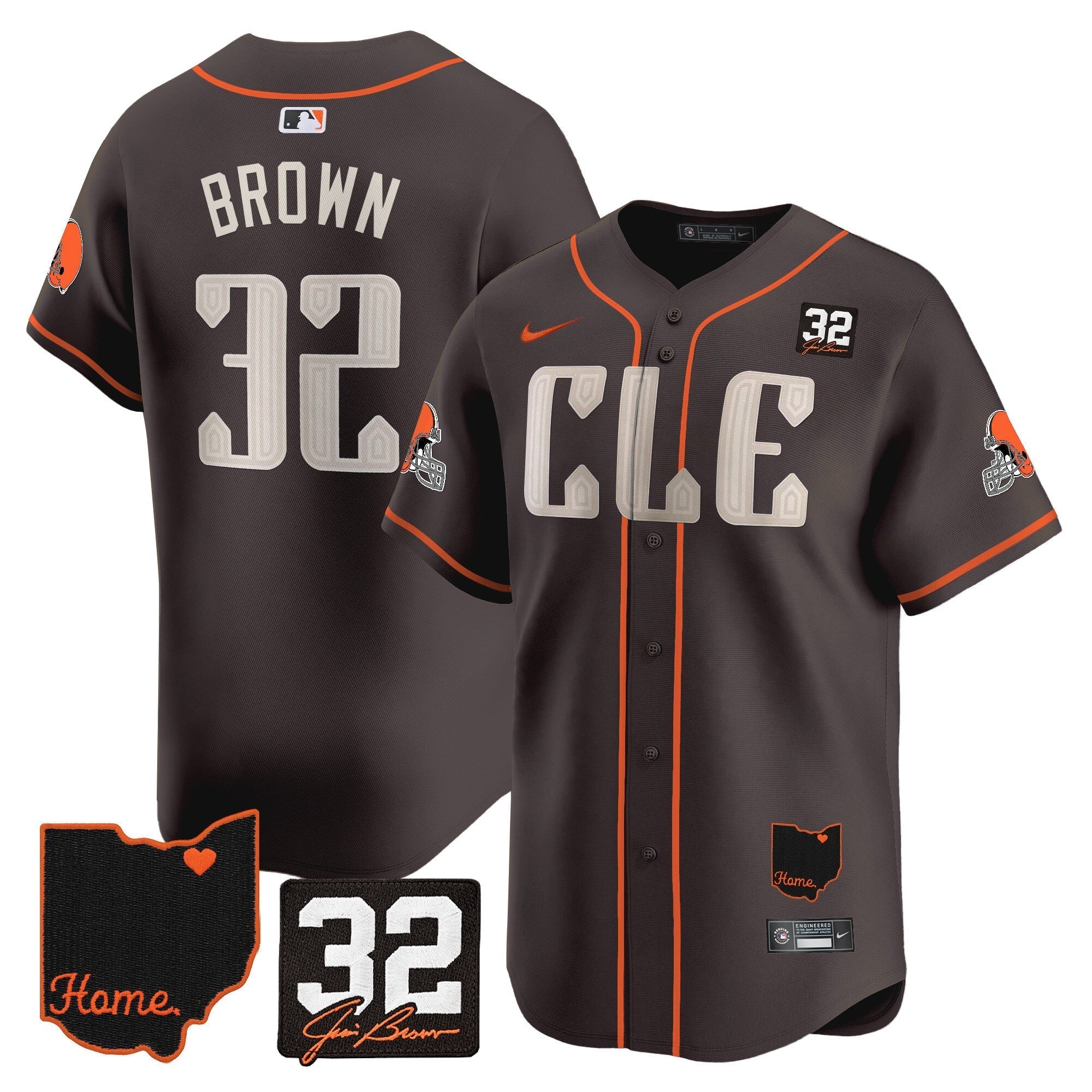 Browns #32 Jim Brown Memorial & Home Patch Vapor Premier Limited Jersey - All Stitched