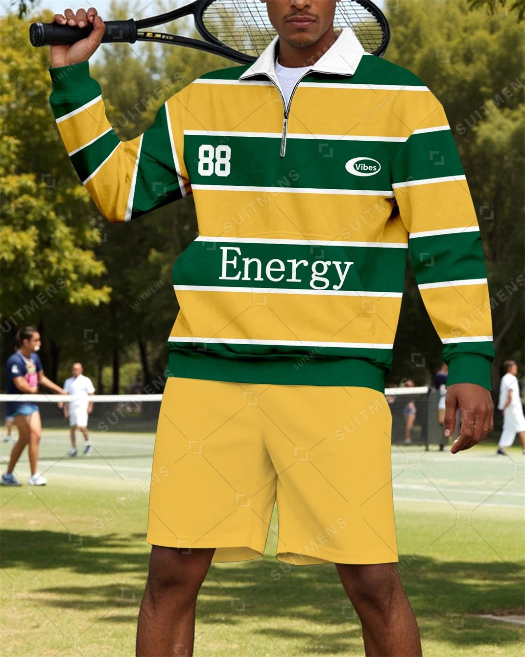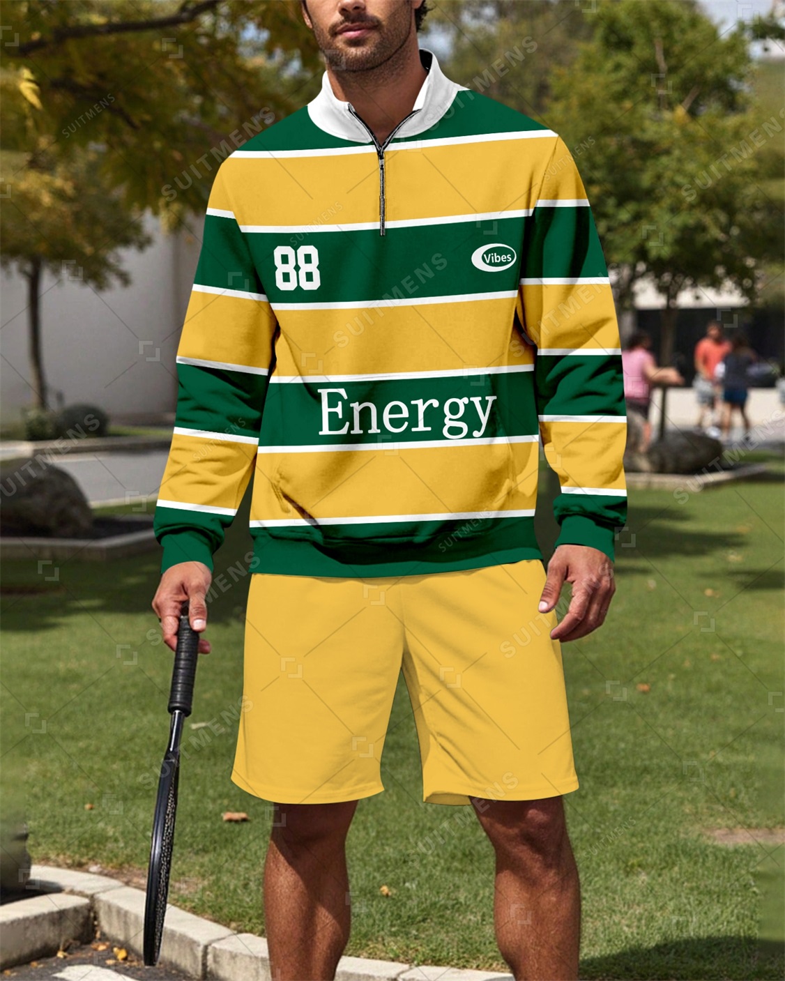 Men's Colorblock Striped Baseball Autumn Sweatshirt and Shorts Set 009
