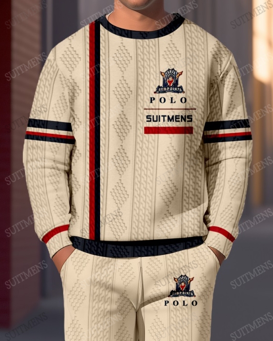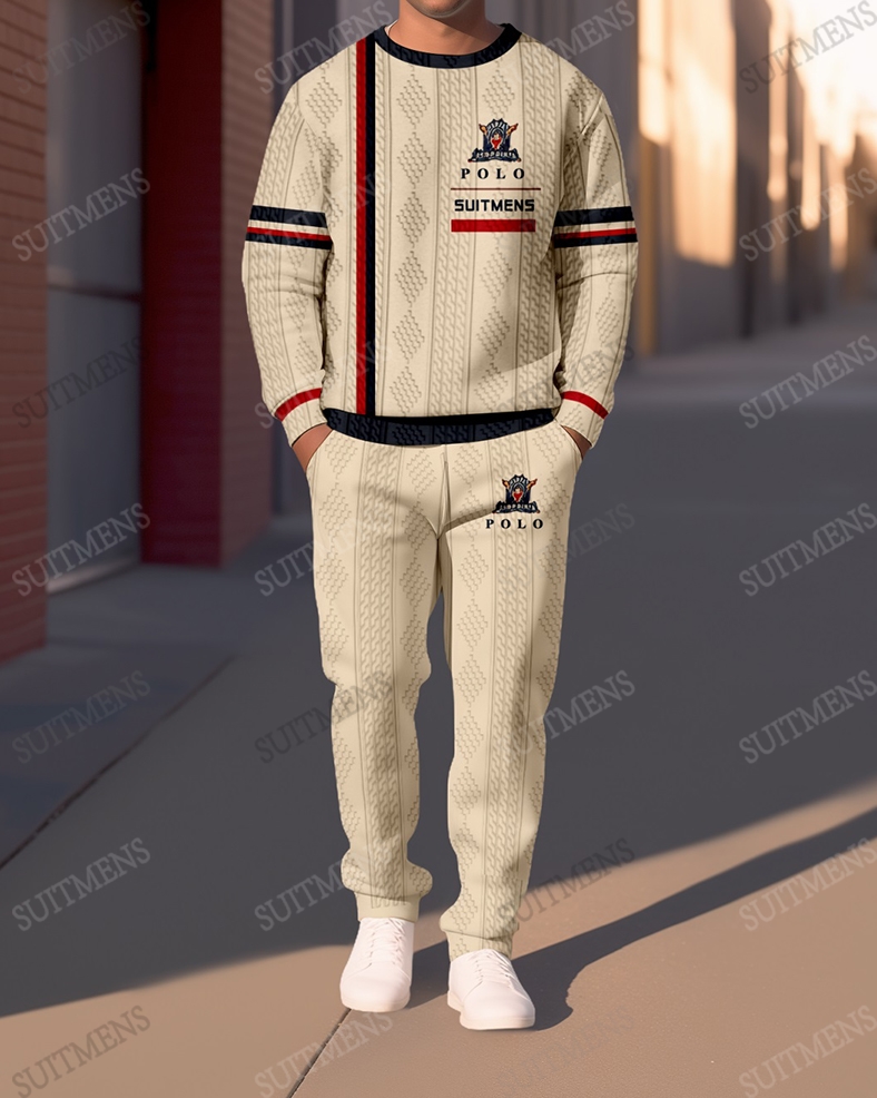 Men's Textured Jacquard Round Neck Casual Sports Set 089
