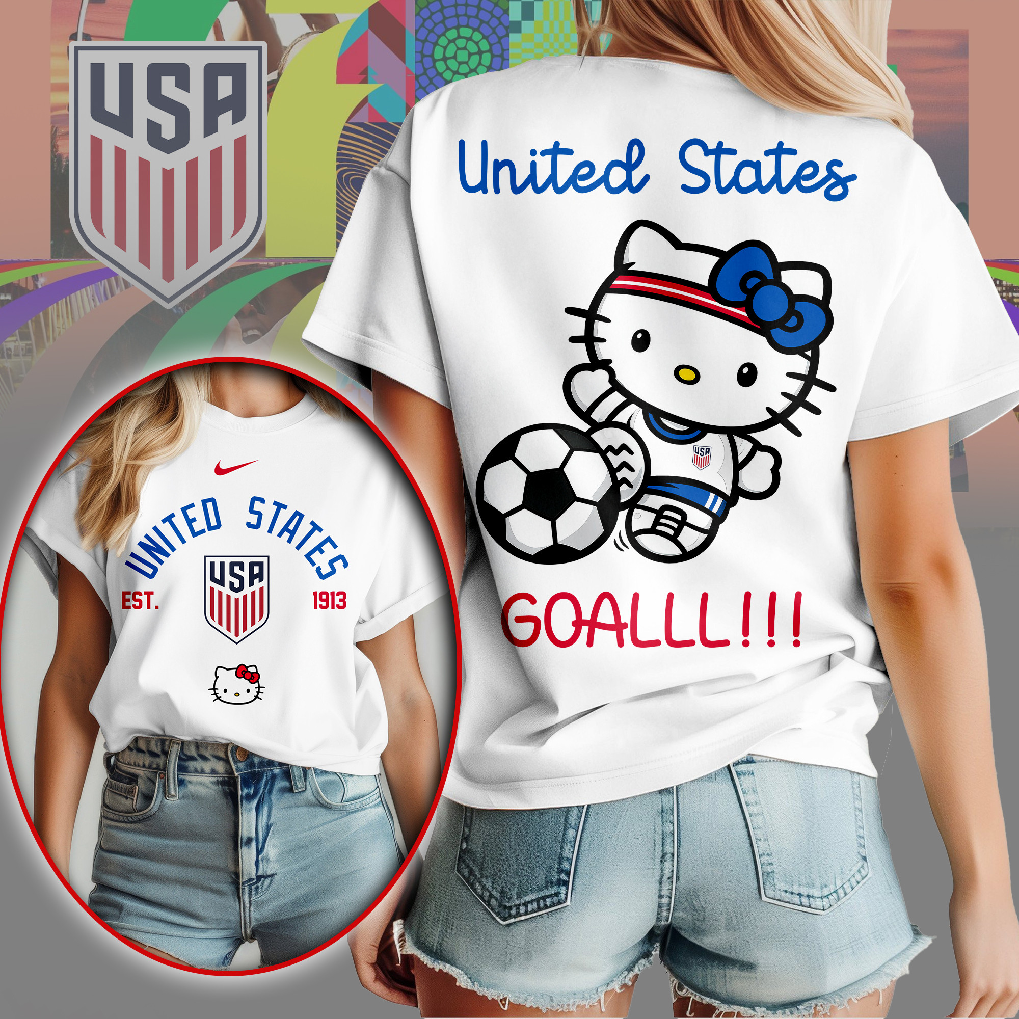 USA | Premium WC26 Hello Kitty Soccer Fan Women Shirt