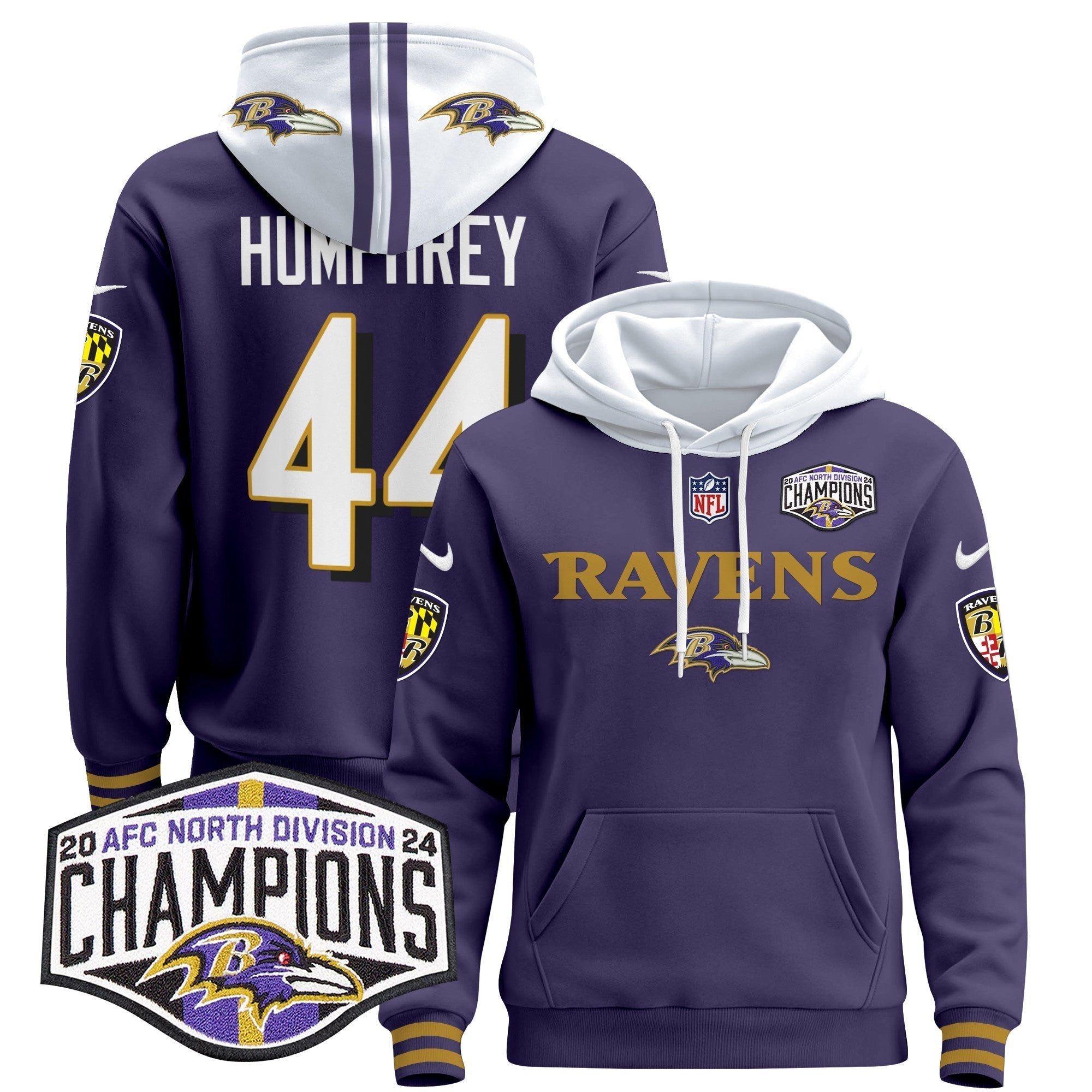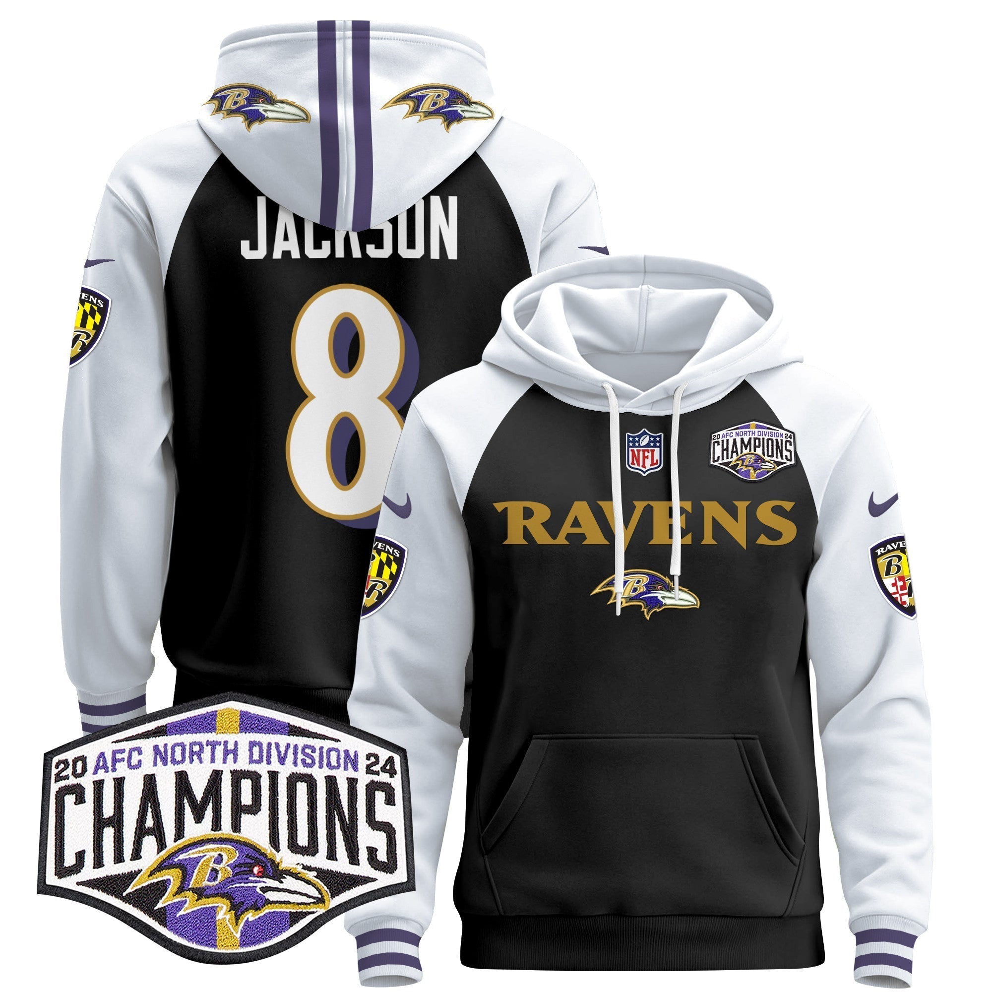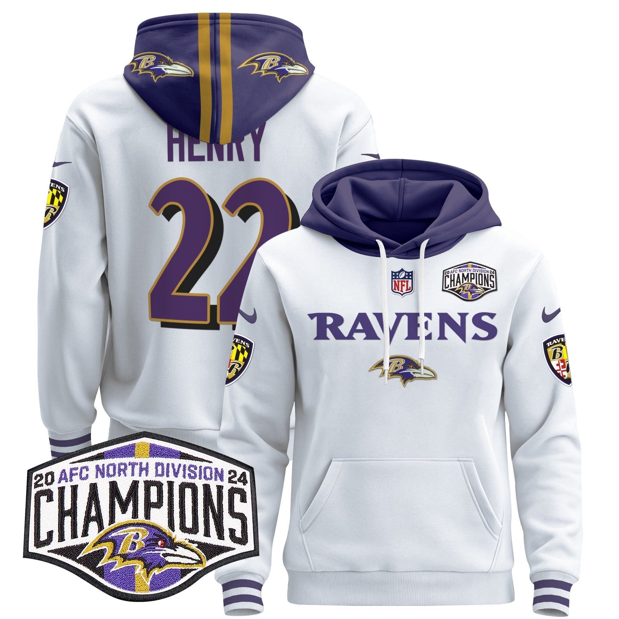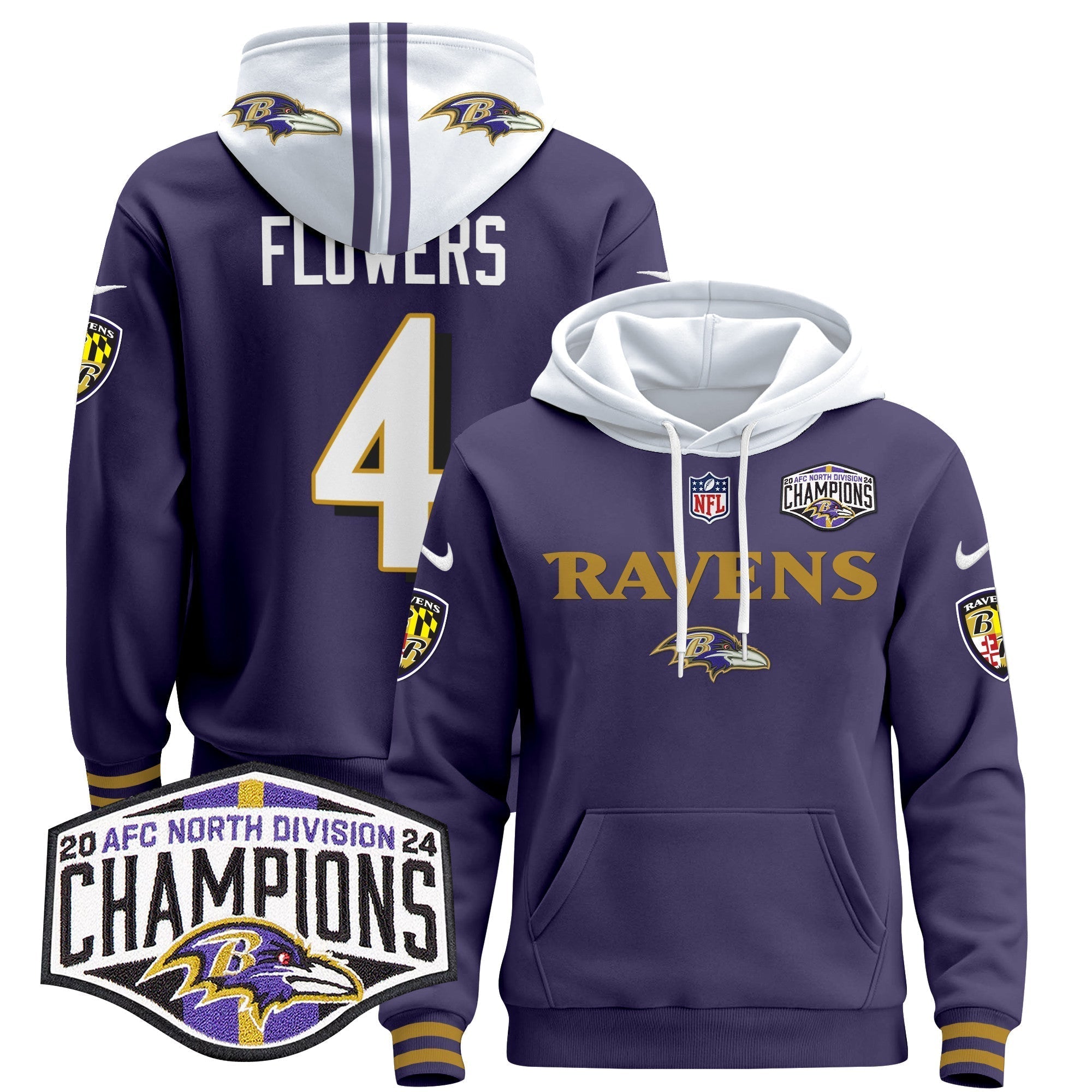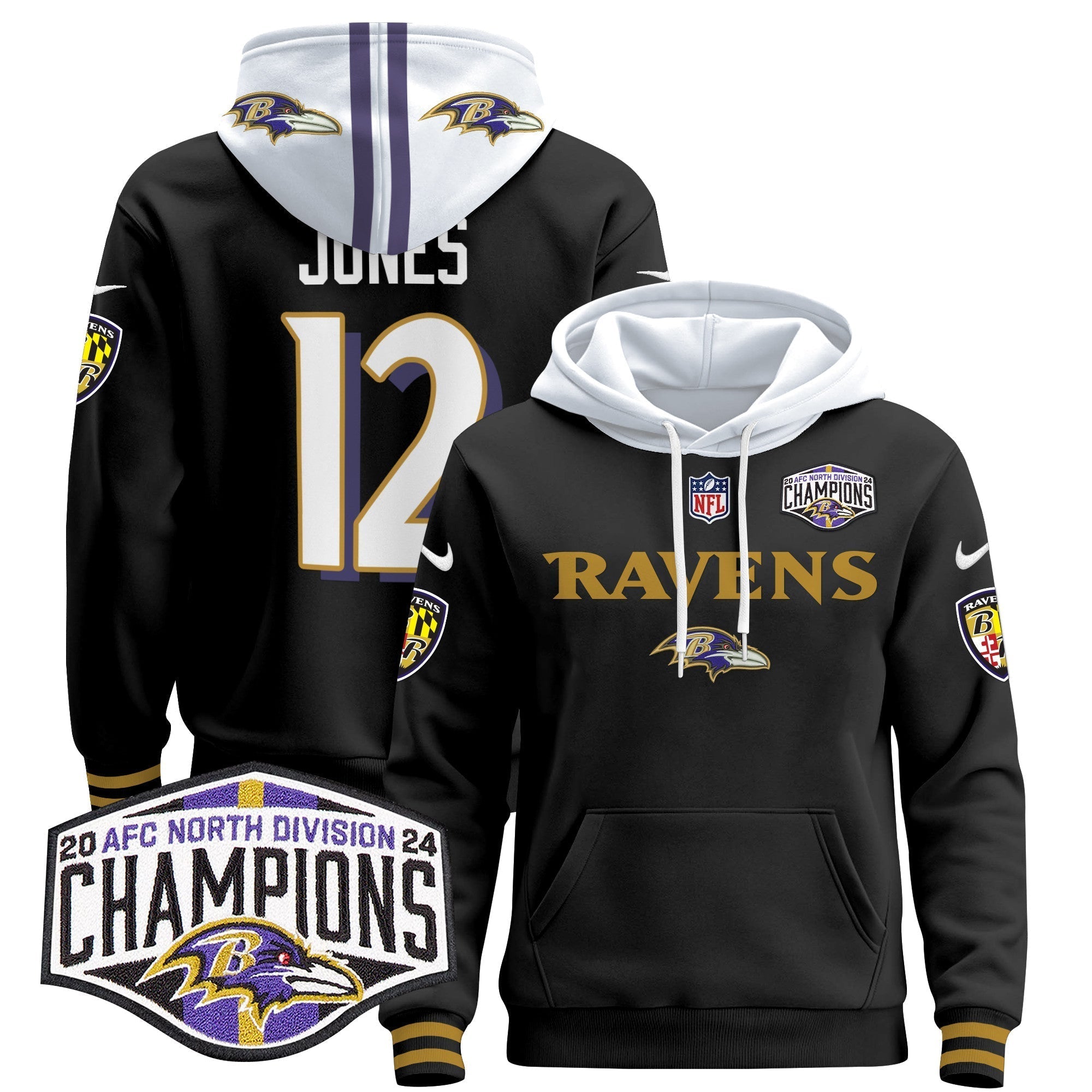 BAL 2024 AFC North Division Champions Patch Pullover Hoodie - All Stitched
