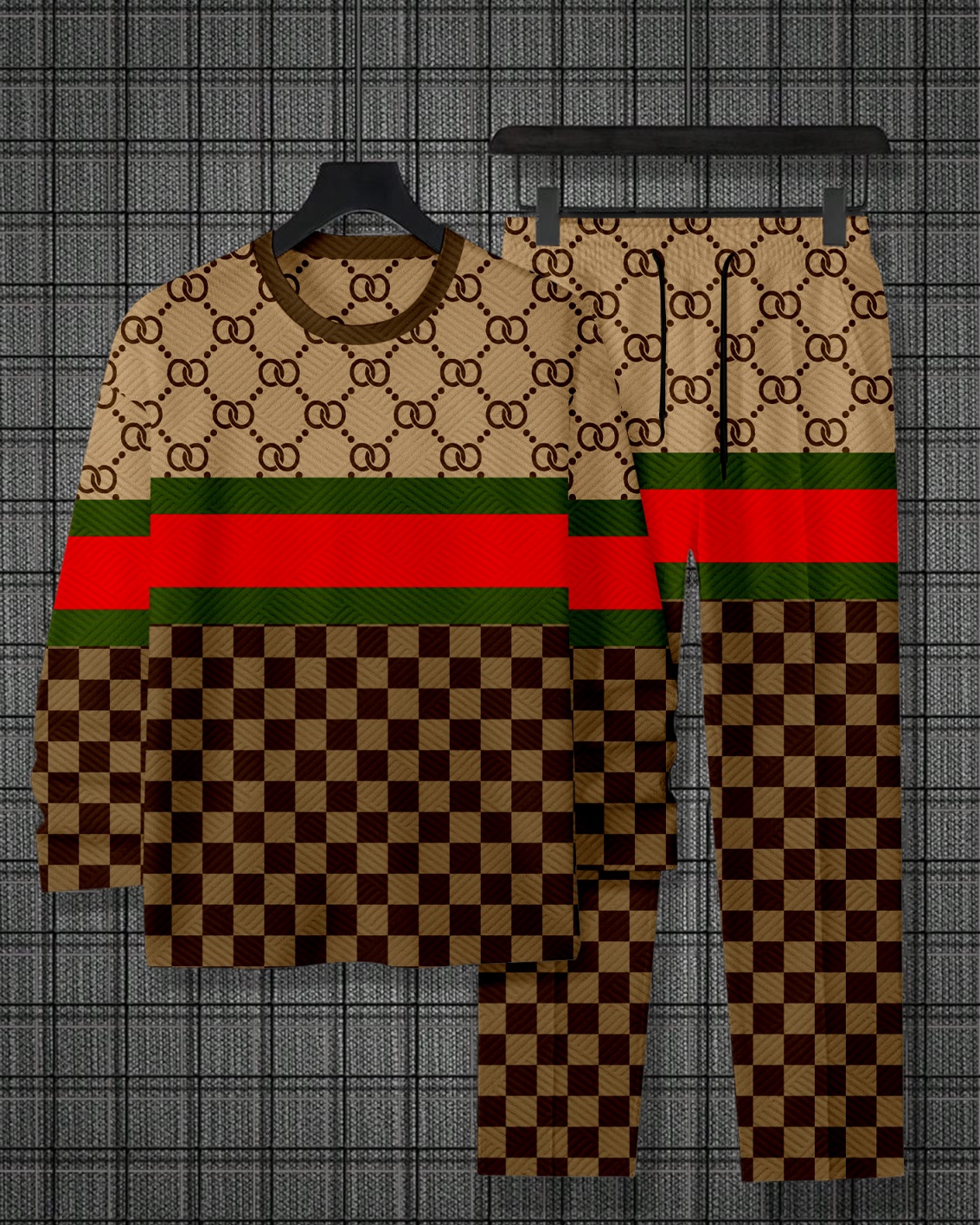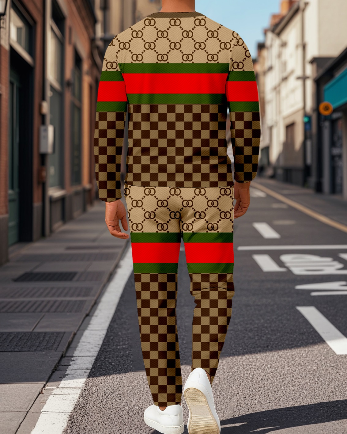 Men's Colorblock Printed Textured Long Sleeve -Sleeved Trousers Suit 039