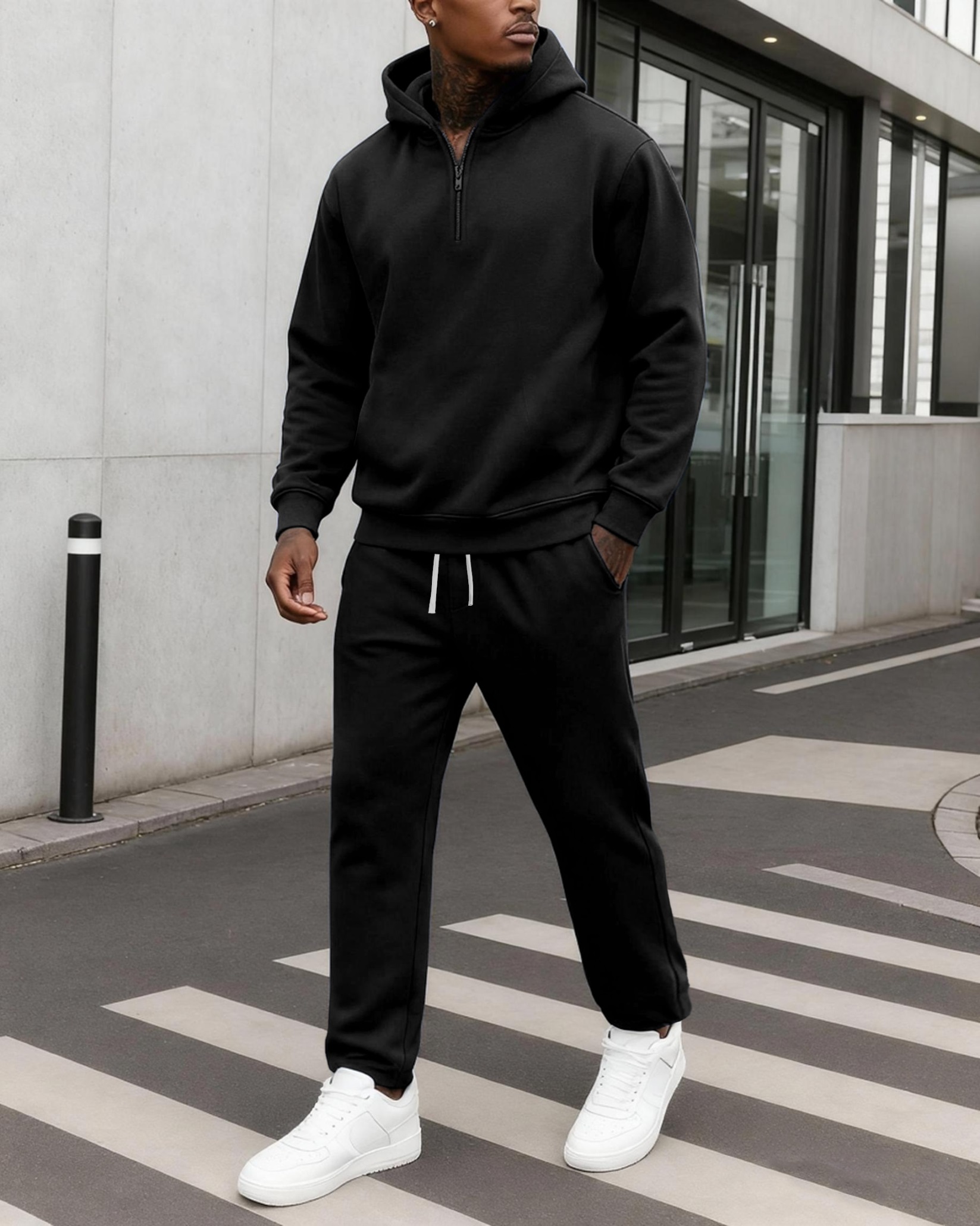 Men's Simple Casual Sports Hoodie Set 02