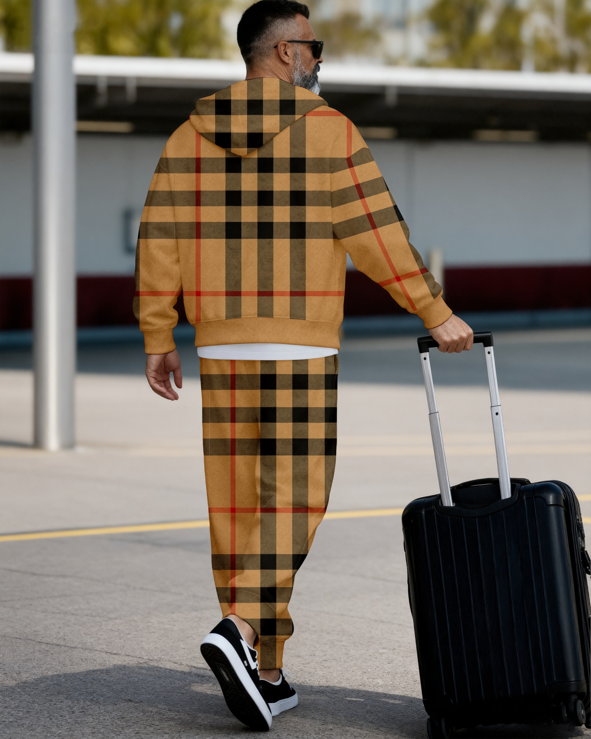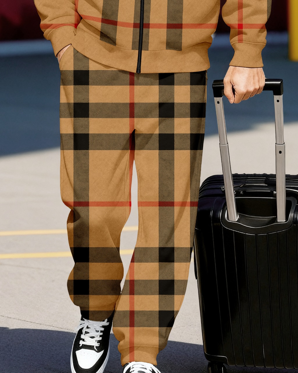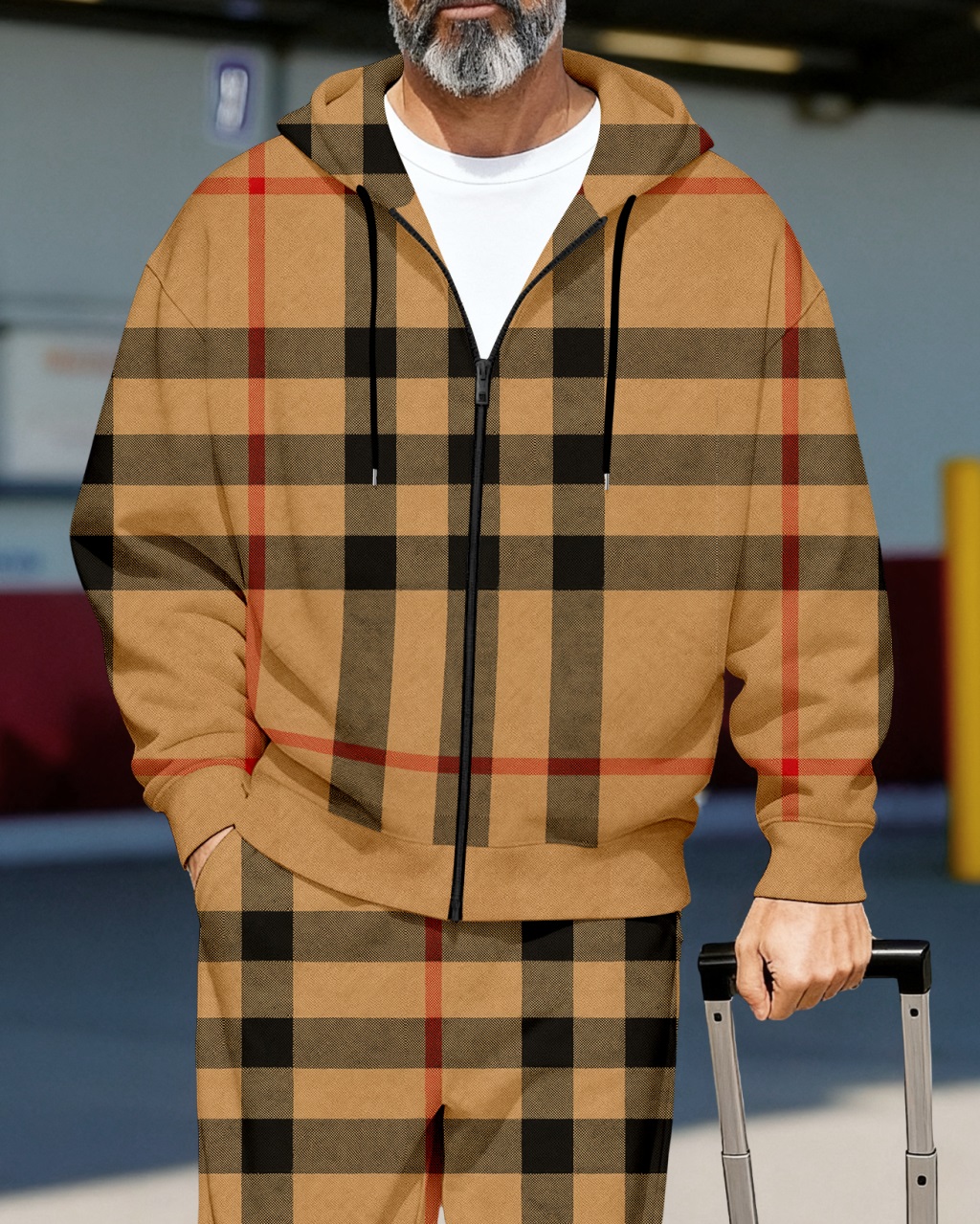 Men's Retro Luxury Thickened Fleece Colorblock Jacket Sports Hoodie Set 06