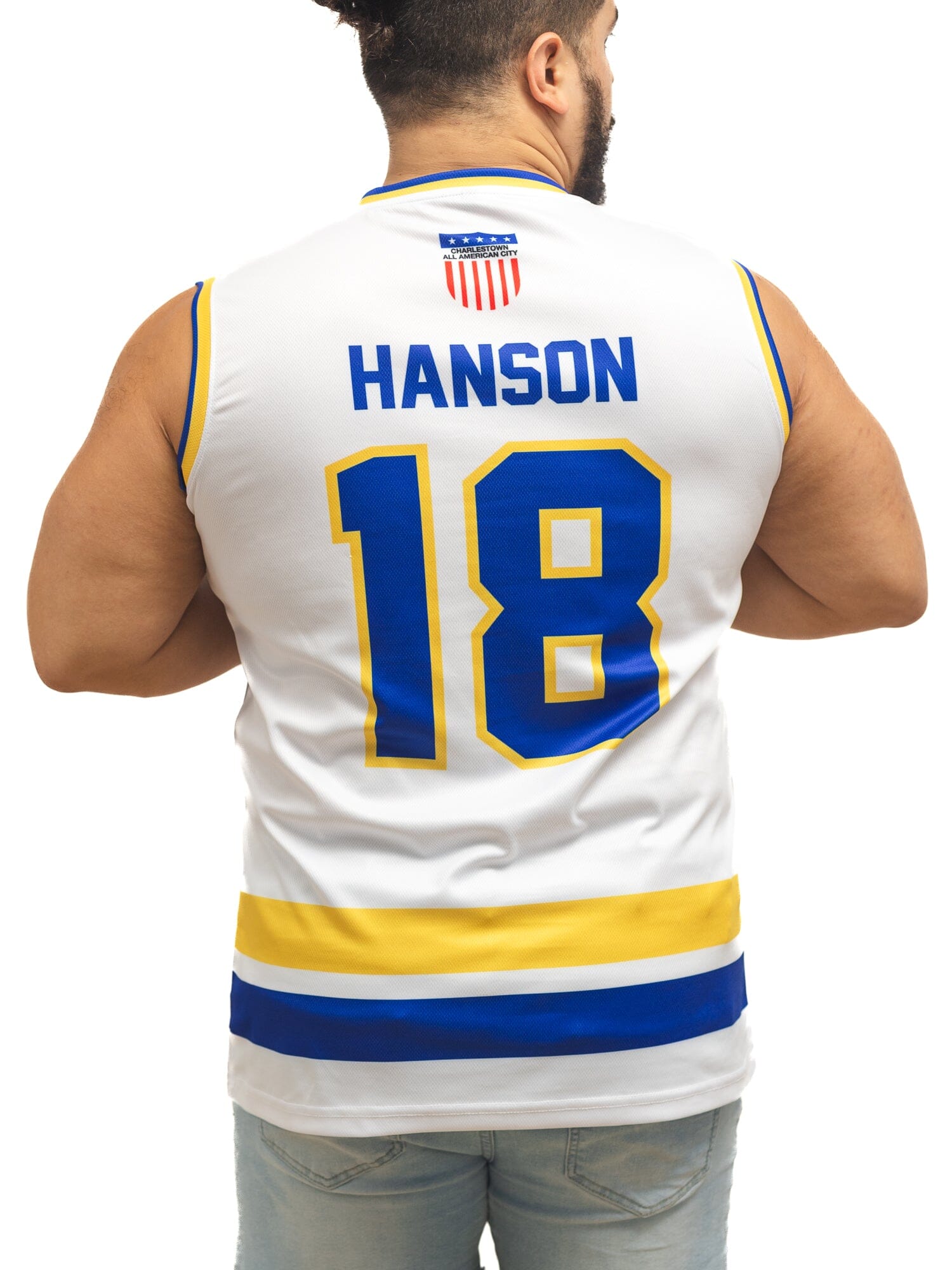 Slapshot Charlestown Chiefs Hanson #18 White Hockey Tank