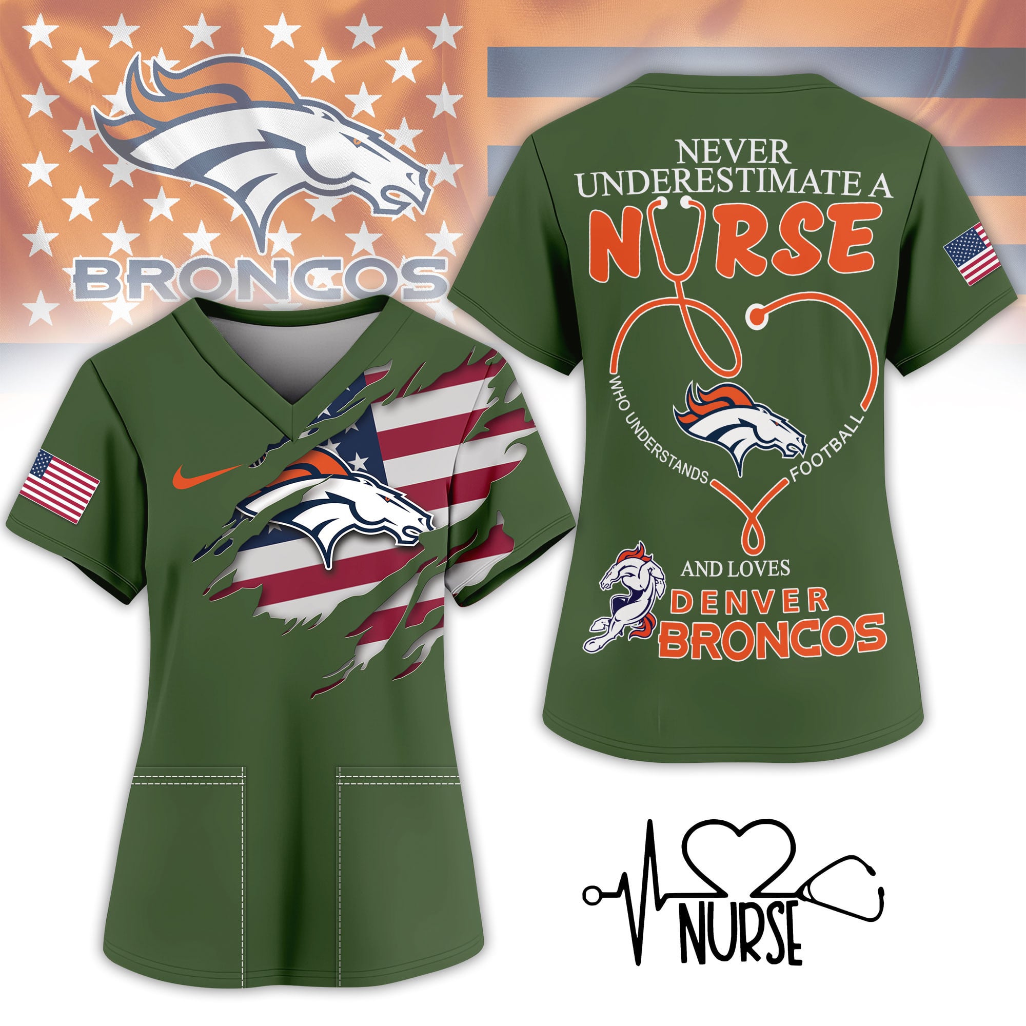 Denver Broncos | Premium NFL Army Nurse 3D Shirt