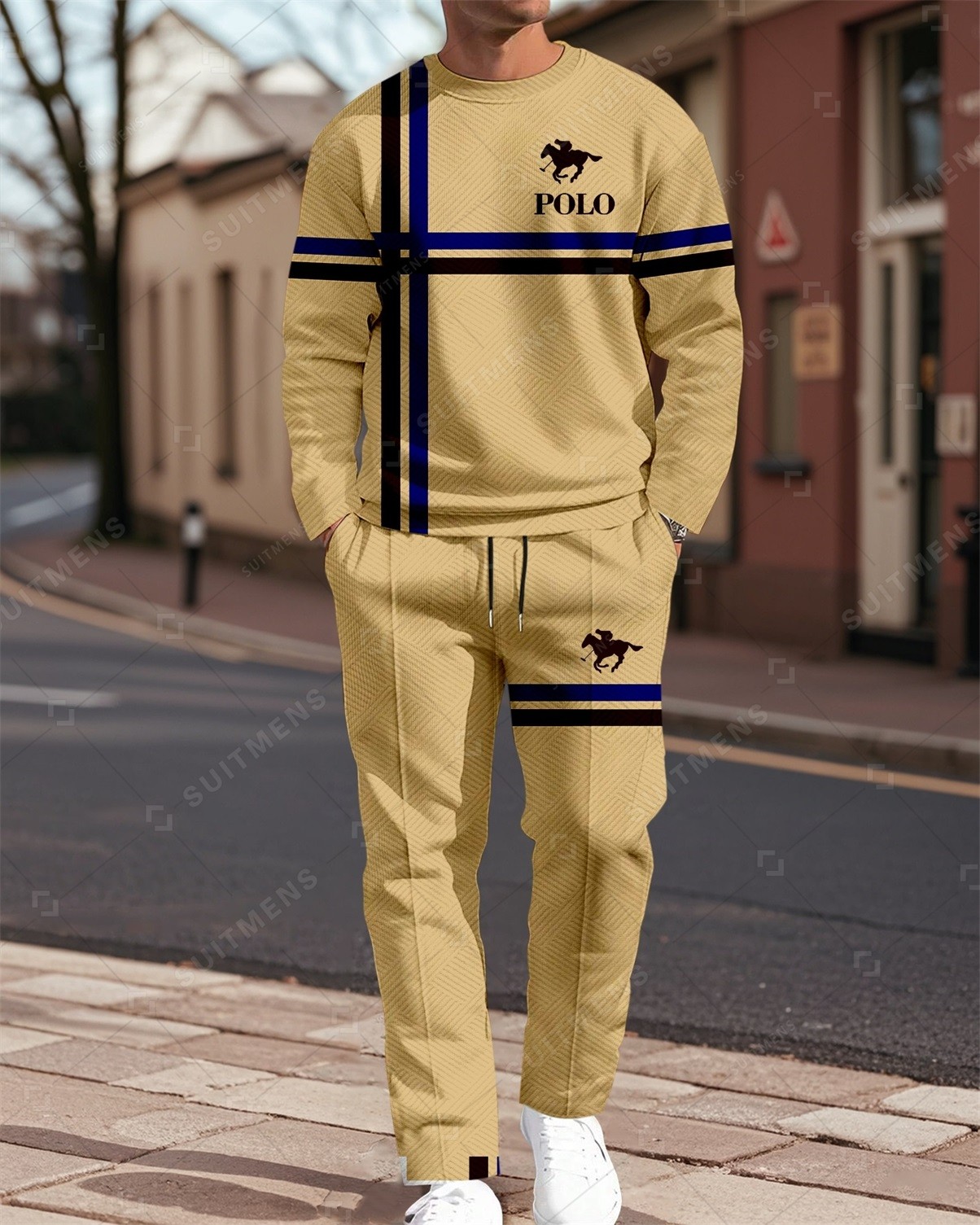 Men's Colorblock Printed Textured Long Sleeve -Sleeved Trousers Suit 001
