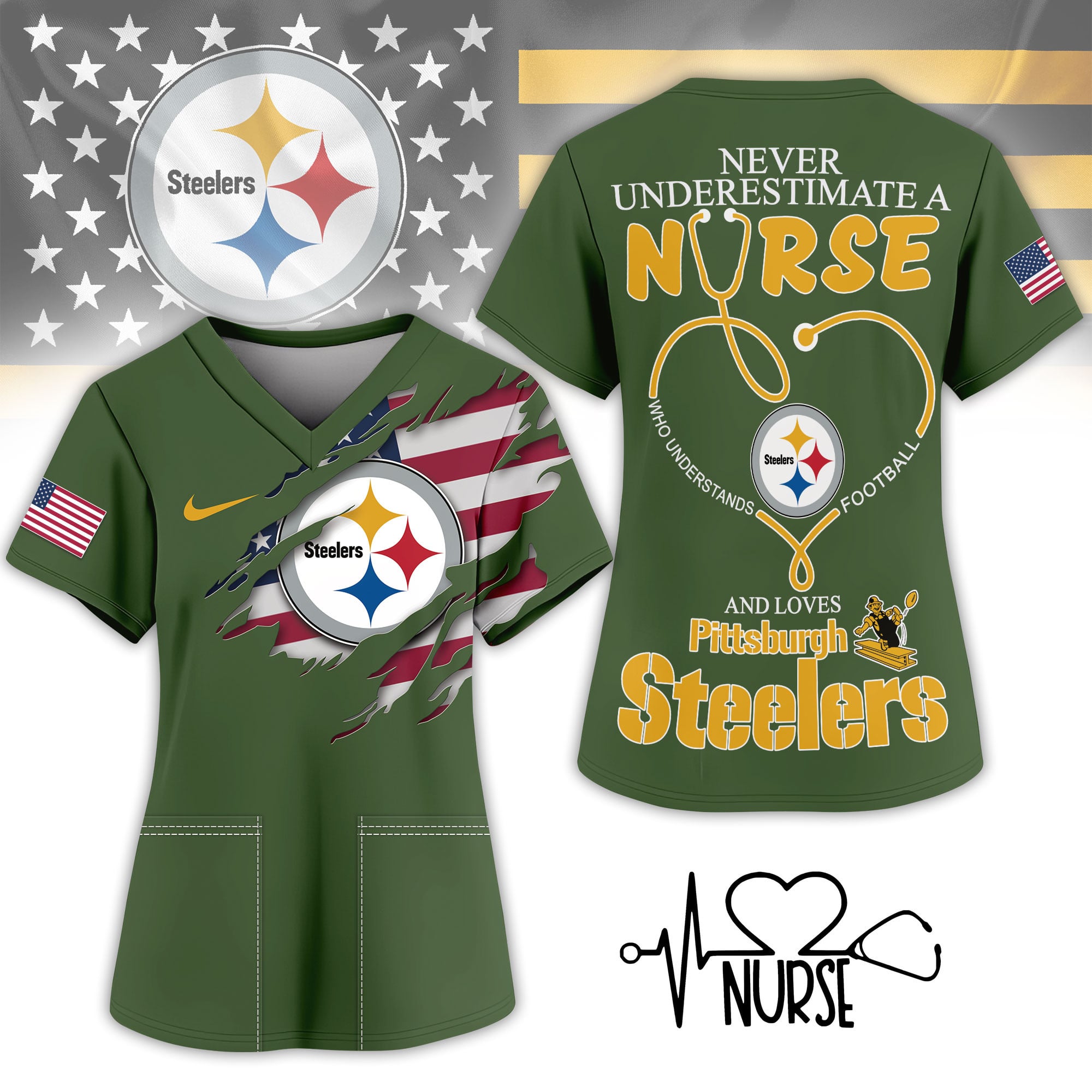 Pittsburgh Steelers | Premium NFL Army Nurse 3D Shirt