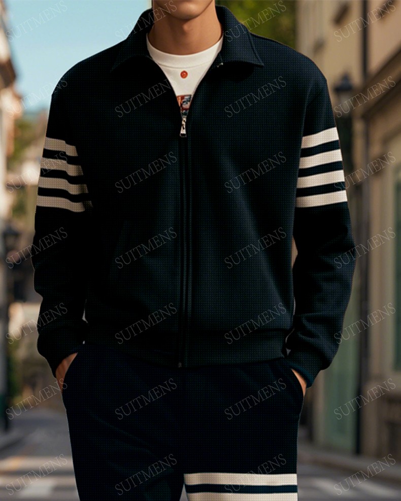 Men's stylish casual striped zipper long-sleeved two-piece set